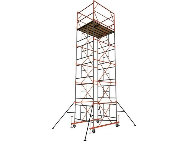 Характеристики: Размер рабочей площадки 2,0*1,2 м или 2*2 м., Максимальная нагрузка 250 кг/м2., Вышки изготовлены из стальной трубы диаметром 42 мм с толщиной стенки 1,5 мм.
